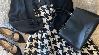 今日のコーデ ワンピース、ボレロ:エムズグレイシー 鞄:Kate Spade New York 靴:DIANA お気に入りポイント いつ購入したものか忘れてしまった程、かなり前のワンピースですが千鳥格子柄は色あせない!流行なくいつも可愛く着...