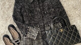 ツイードショートコート&スカートセットコーデ