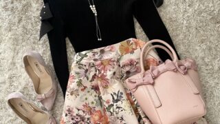 リボンニット&花柄ワンピース