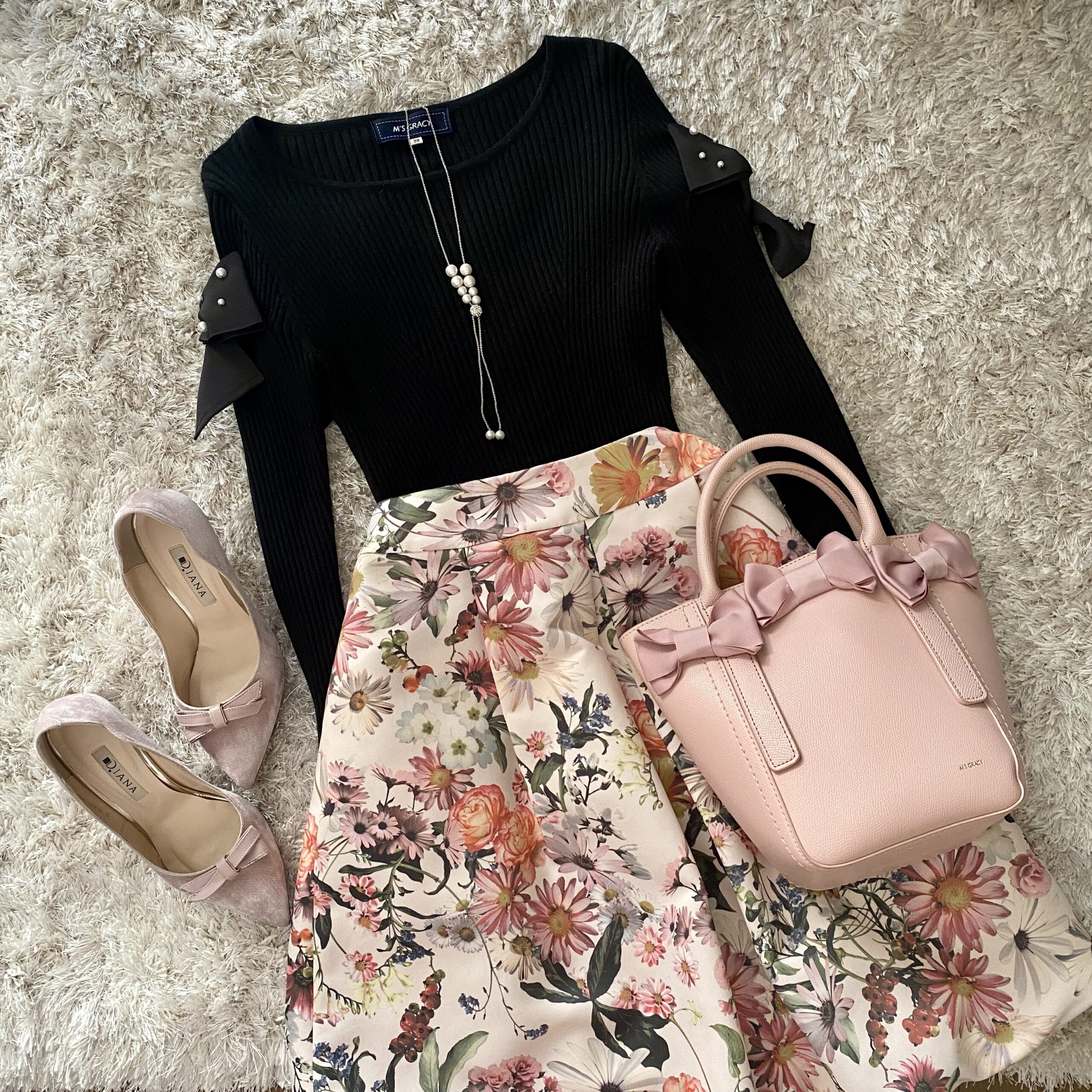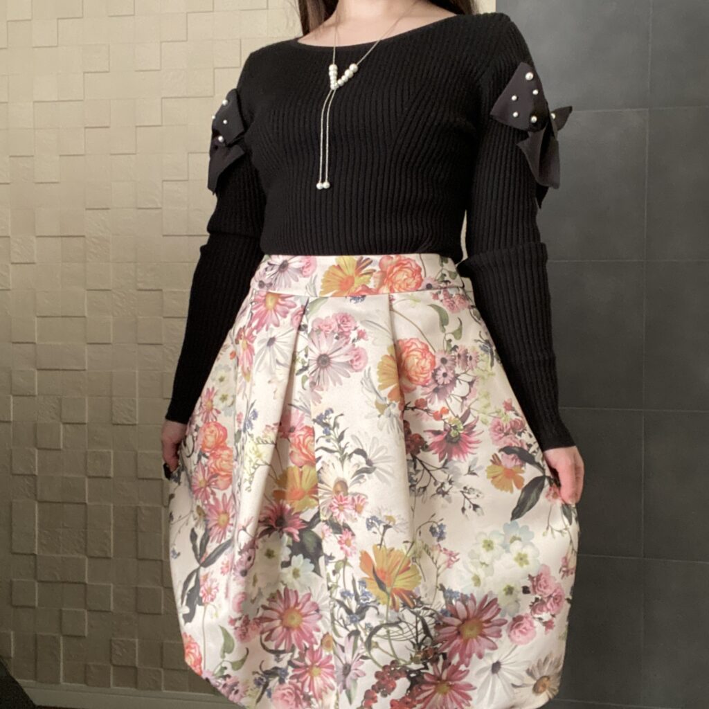 これだけ存在感のあるピンクの花柄スカート、黒に負けませんでした笑