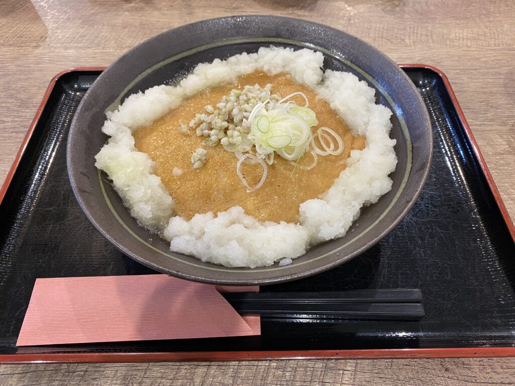お揚げにダシがたくさん染み込んでいて、周りの大根おろしと一緒に食べるとめちゃくちゃ美味しい!