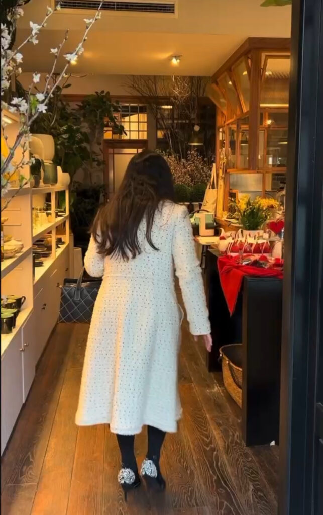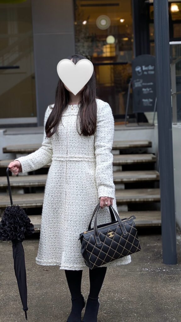 ホワイトコートに、この靴を合わせたことで何だか雪の結晶みたいなコーデになりました。
