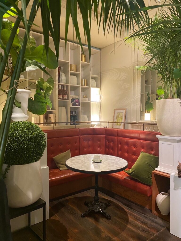 緑がたくさんある店内に、インテリア雑貨も購入ができるショップ兼カフェです。