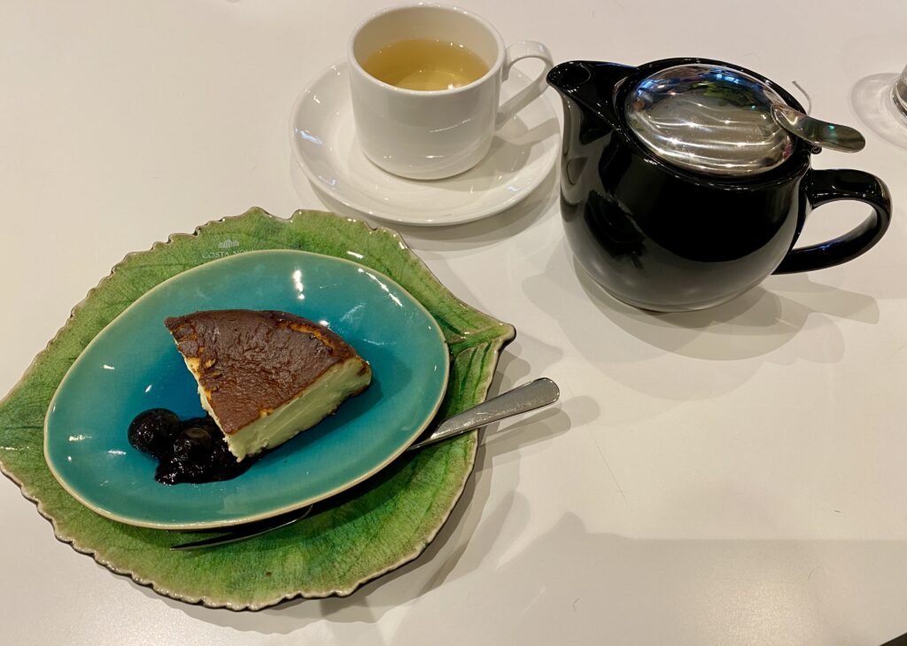 カフェでは、ハーブティーとバスクチーズを注文しました!