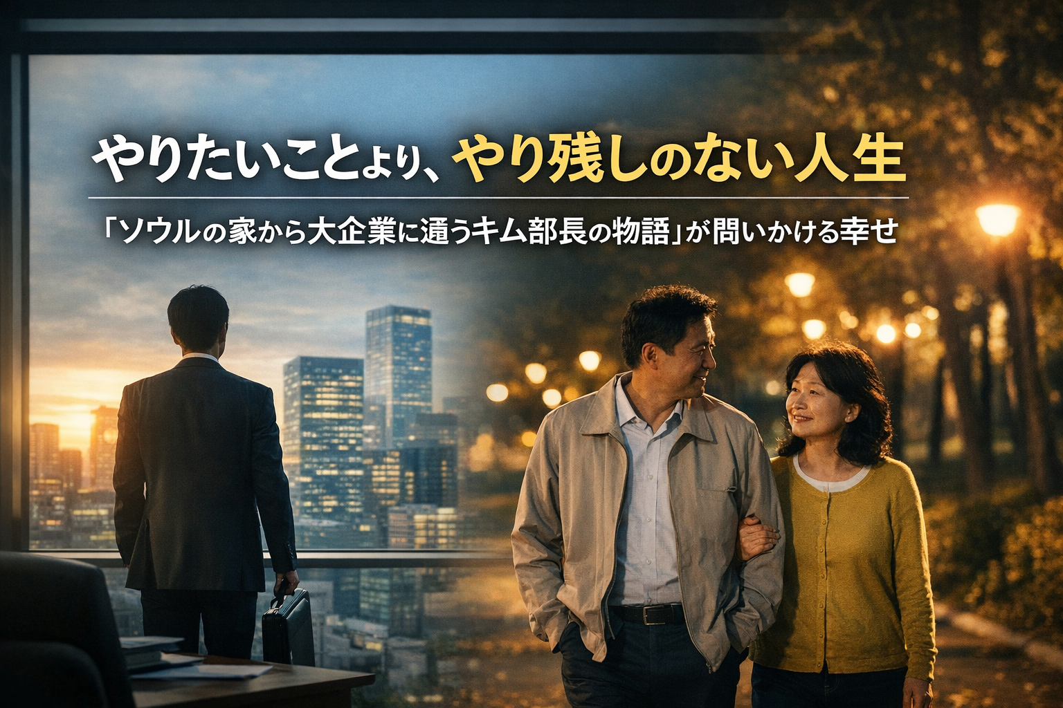 勝ち組のレールから外れたように見えるキム部長が、夜の公園で奥さんと歩幅を合わせてゆっくり歩く。