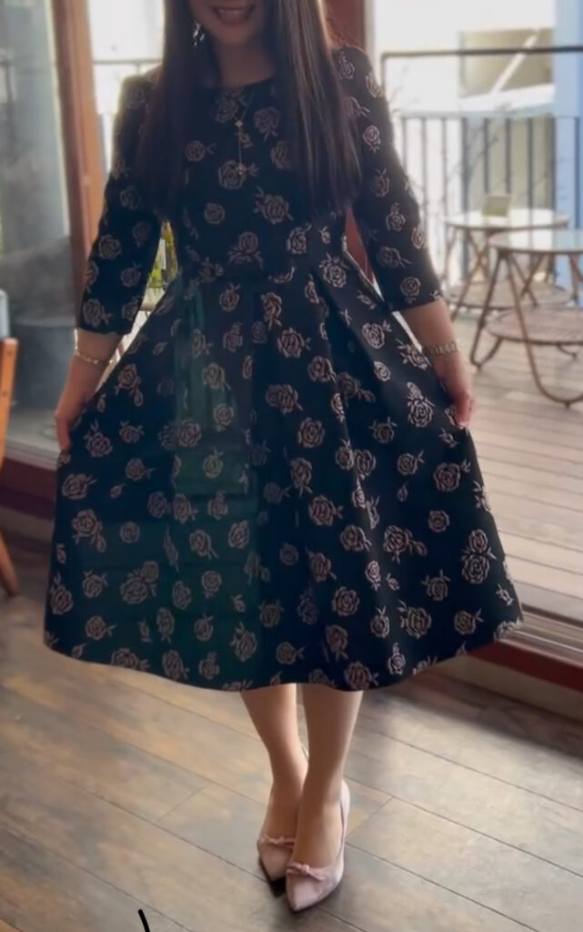 普段着ているワンピースよりも丈が長めで、Aラインが綺麗!