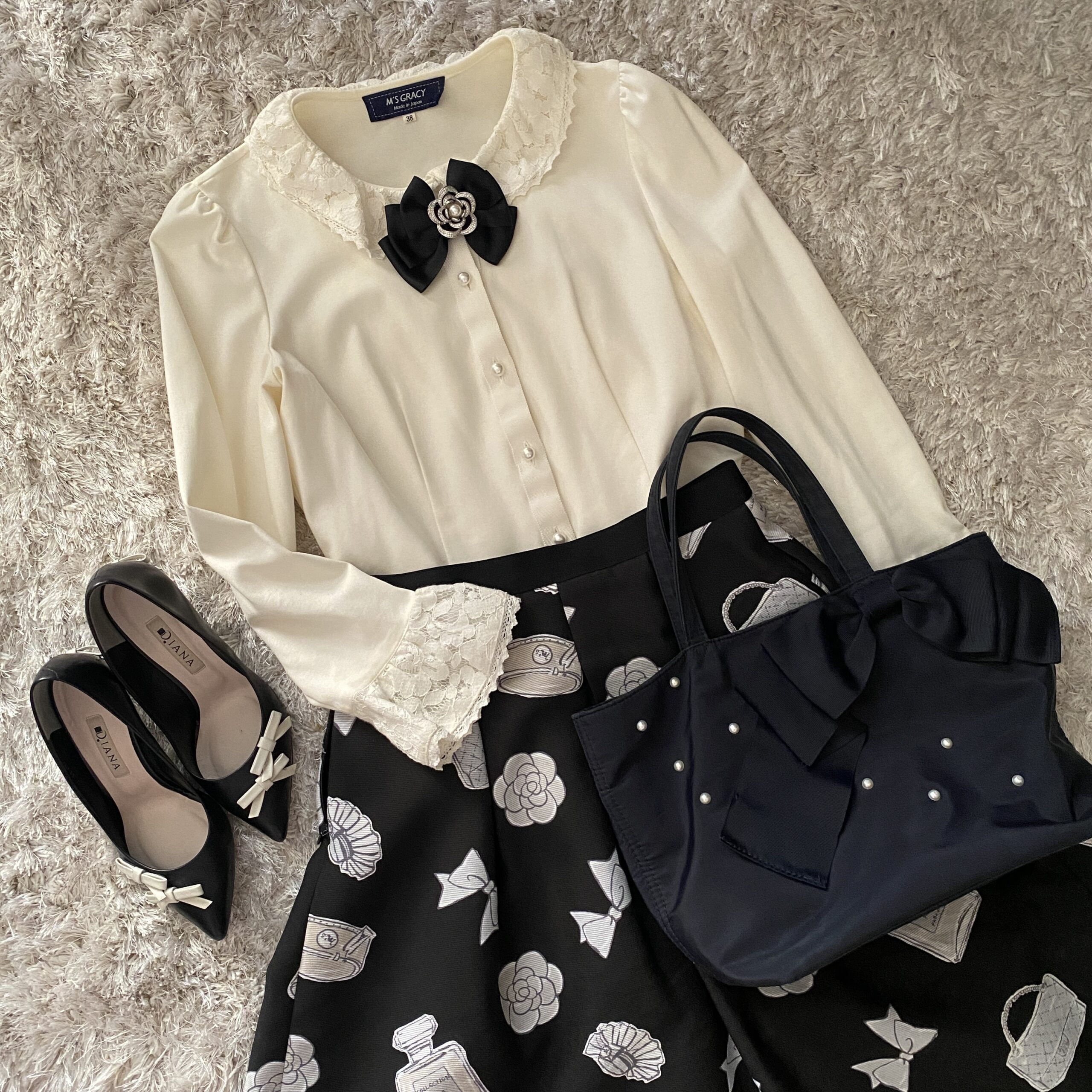 ブラウス、スカート、鞄、ブローチ:エムズグレイシー