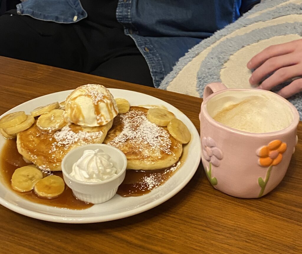 女子はドリンクのみ、男性陣は可愛らしいスイーツを頼んでいました!
