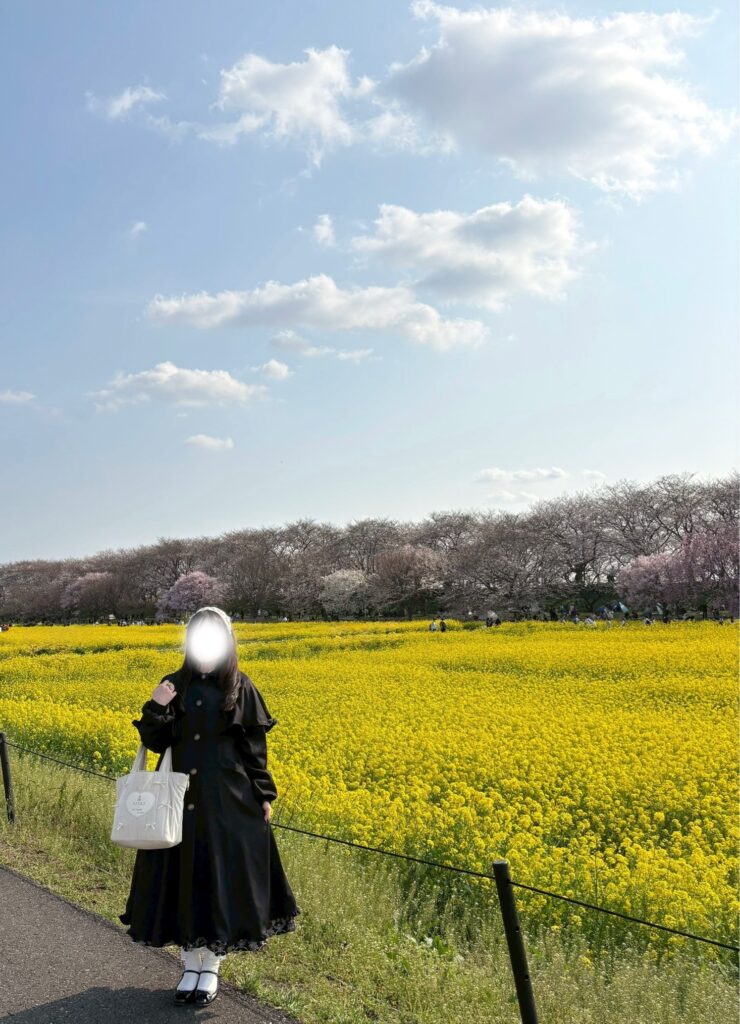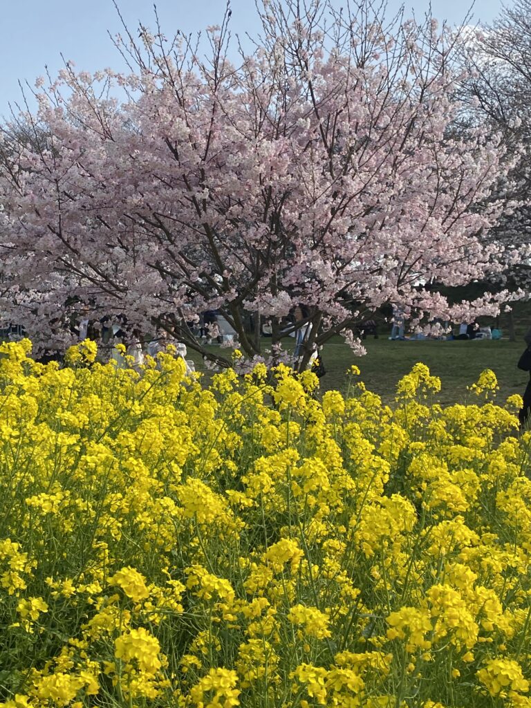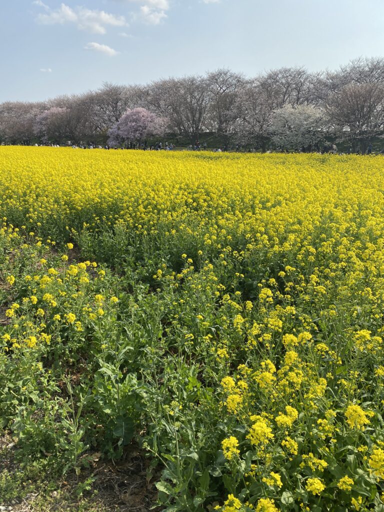 更にさくら並木を抜けると、今度は菜の花畑が!