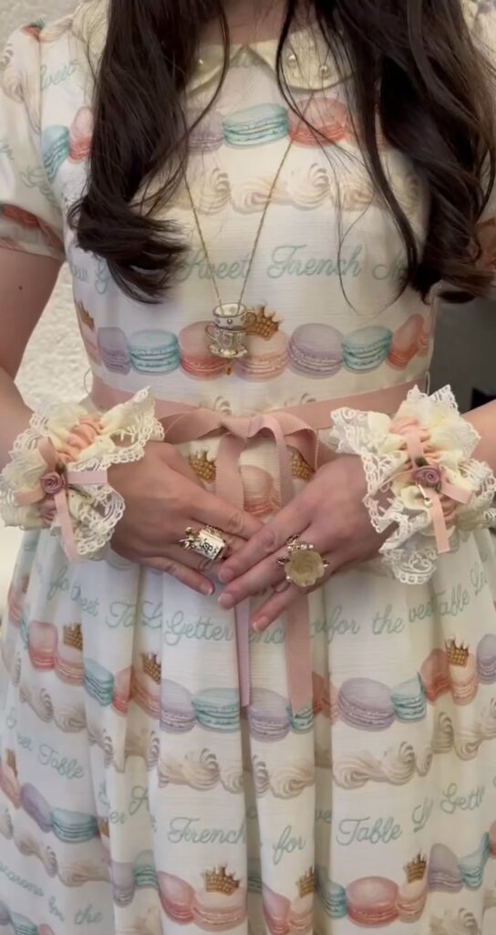 ポイントでマカロンに王冠も載っていて、襟元もパールがついていてキラキラしていて、可愛いの大渋滞です。