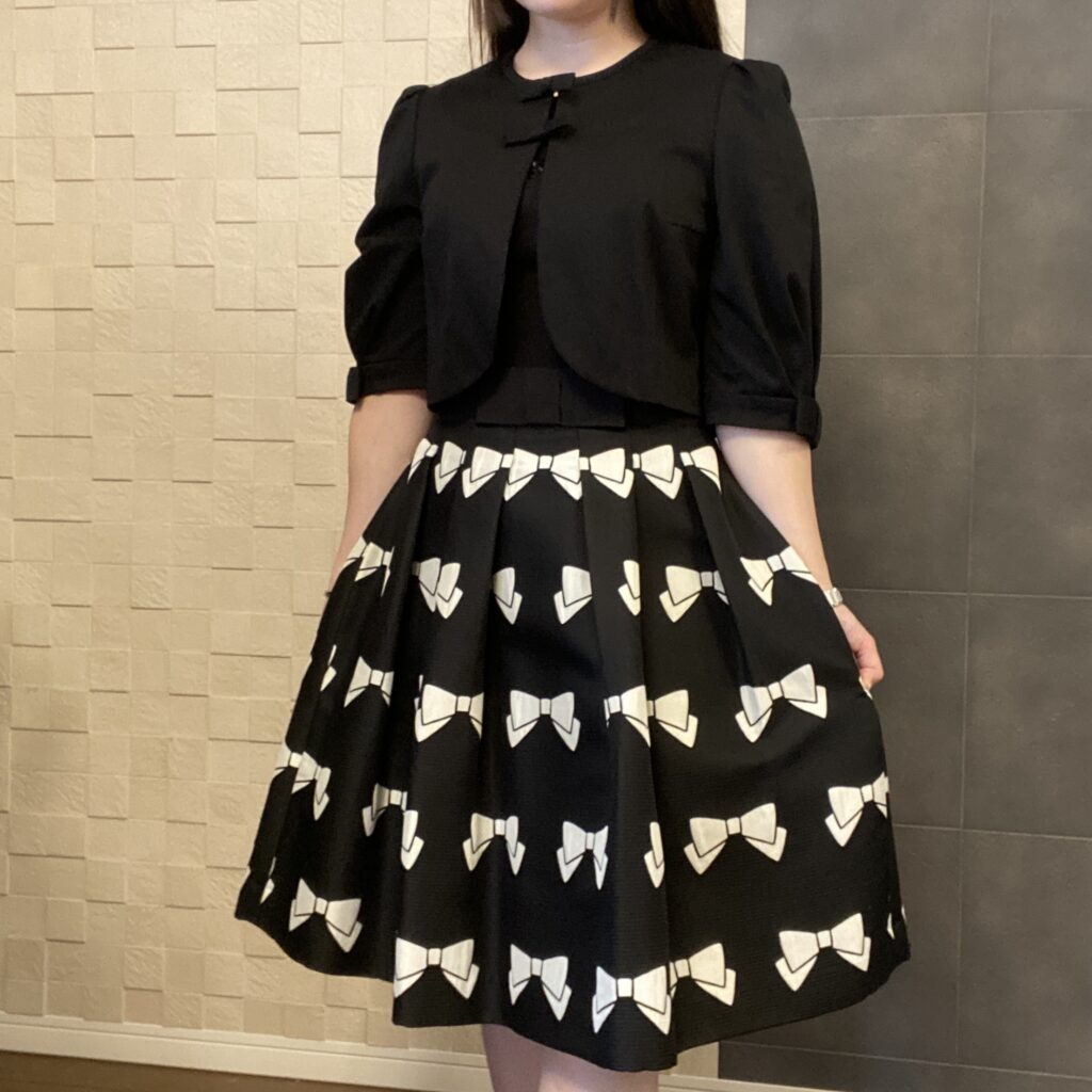 黒字に白のリボンがいっぱいで、柄が目立って可愛いですよね。