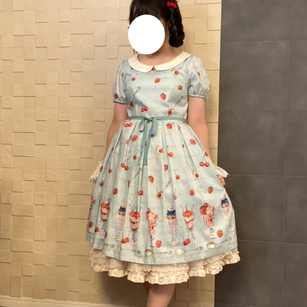 そして、かなり前に購入したのでスカートの丈が短いので、下にパニエスカートを合わせて