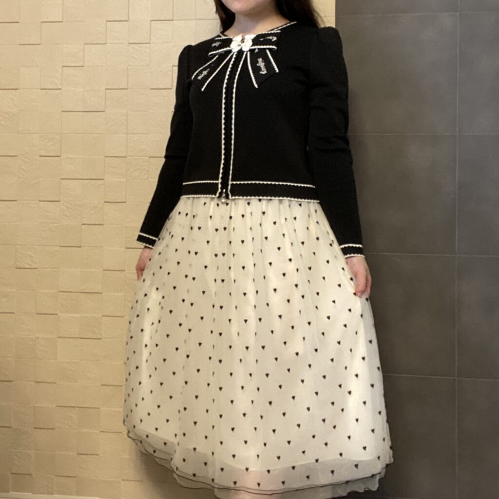 ハートの刺繡がちりばめられた、チュールスカートが、これもめちゃくちゃ可愛い。