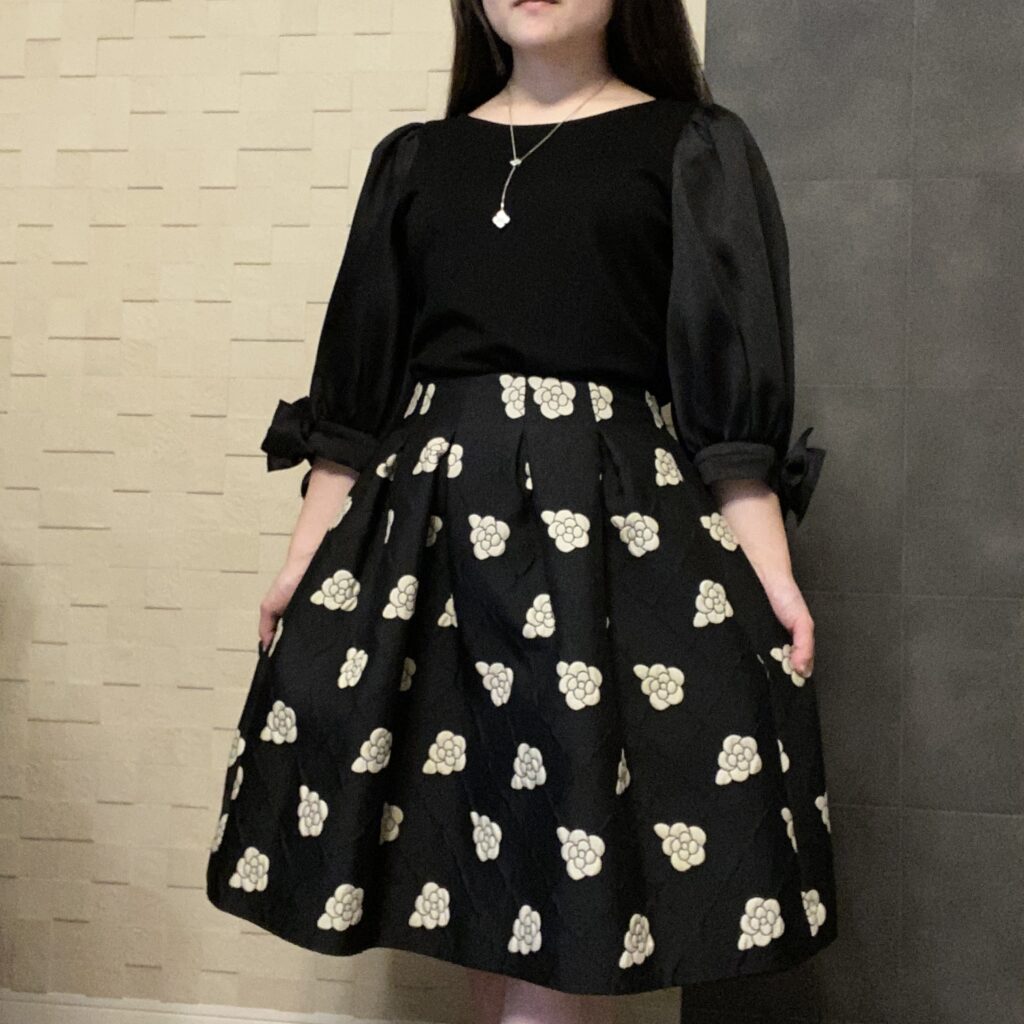 スカートもハリがしっかりある生地なので、履くとAラインが綺麗☆