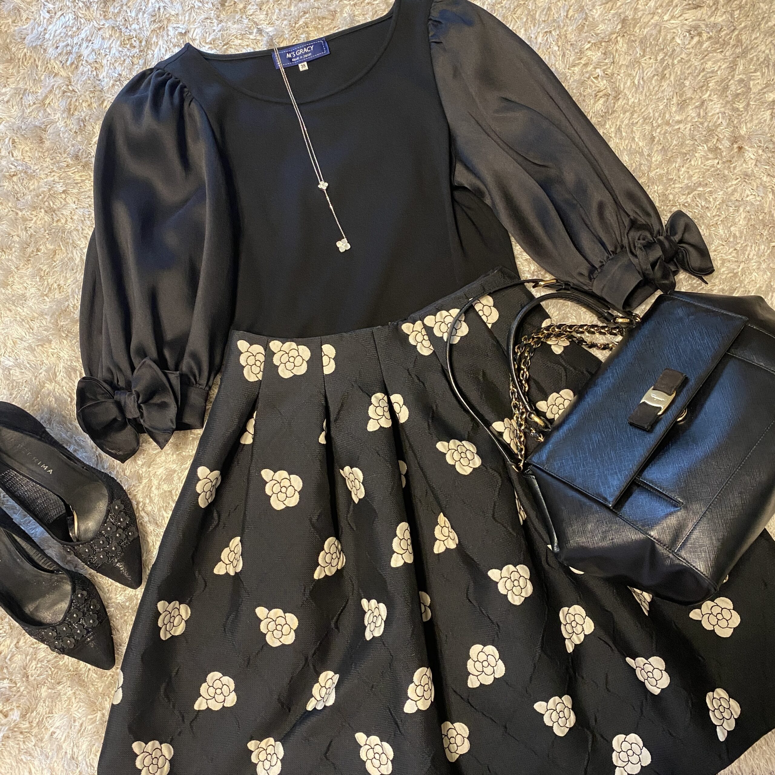このスカートも、エムズグレイシーの定番柄、カメリアですが