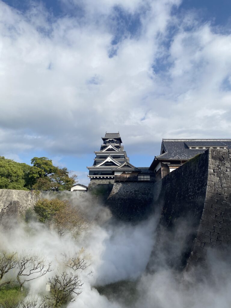 あと時間帯によっては、ミストがでてきて、これをバッグに撮る熊本城がカッコいい!
