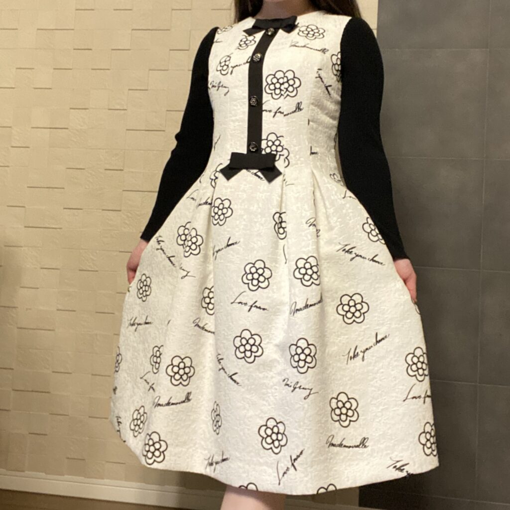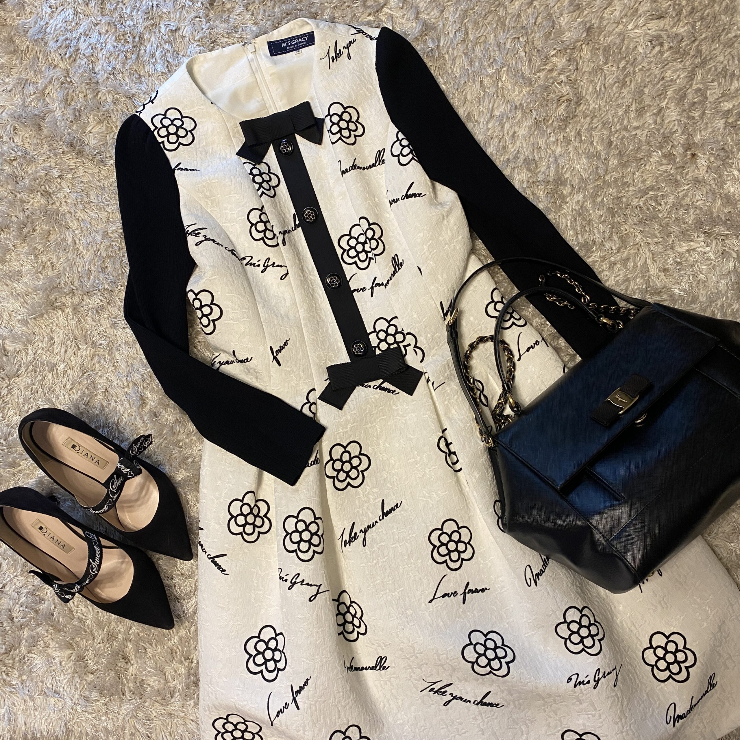 リボンに白のロゴが入っていて、いい感じに白黒モノトーンコーデになりました。