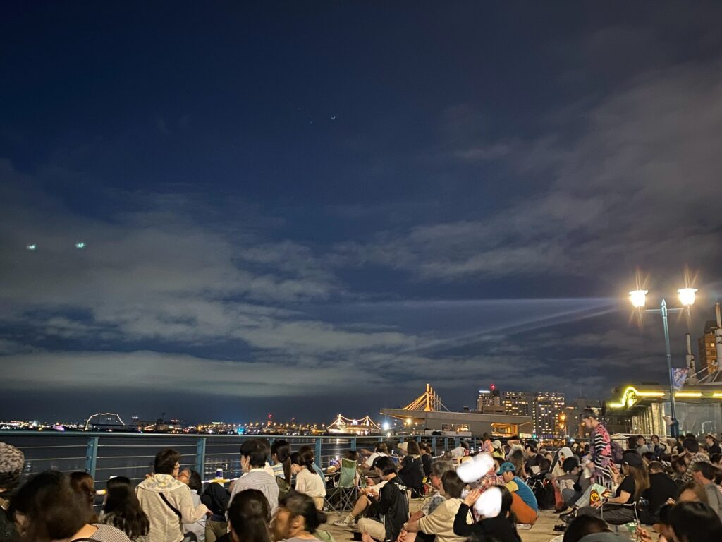 ↑たくさんの人が座っていますが、東京の花火大会と比べたら席取り争奪戦もなく、ギュウギュウでもなく大変平和でした。