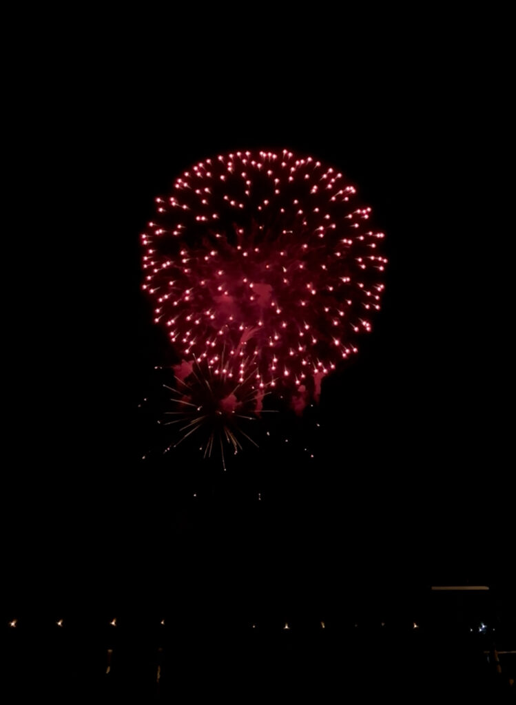 そこから見た花火の写真です、周りに建物がないので綺麗でした!