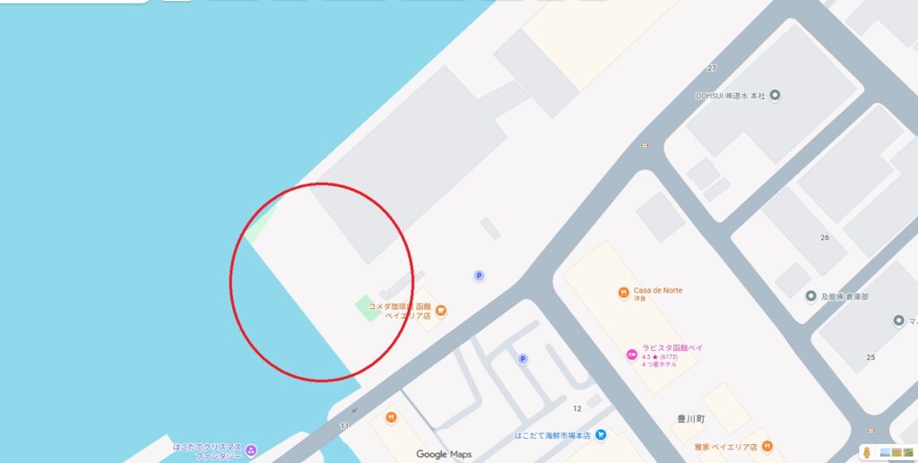 最初はベイエリア 函館港末広緑地で待機していて、いざ始まったら音楽全く聞こえない!!泣