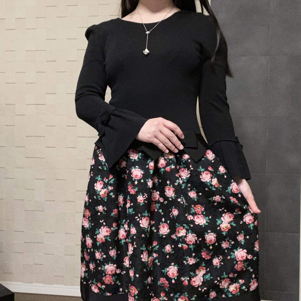 スカートは小花柄がデザインされていて、派手過ぎず華やかなデザイン。