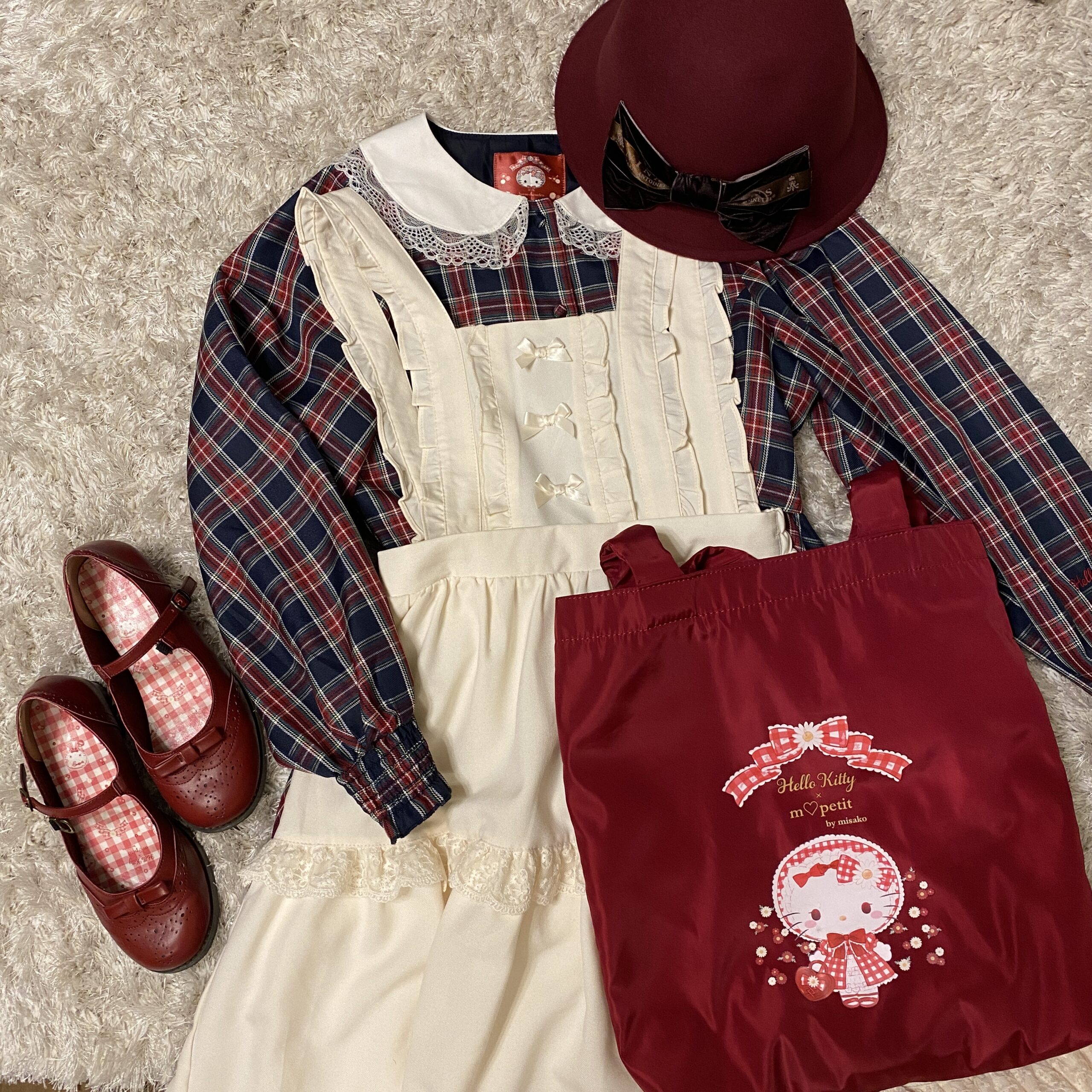 赤チェックのワンピースが、昔のキティちゃんを思い出すレトロデザインで可愛いですよね。