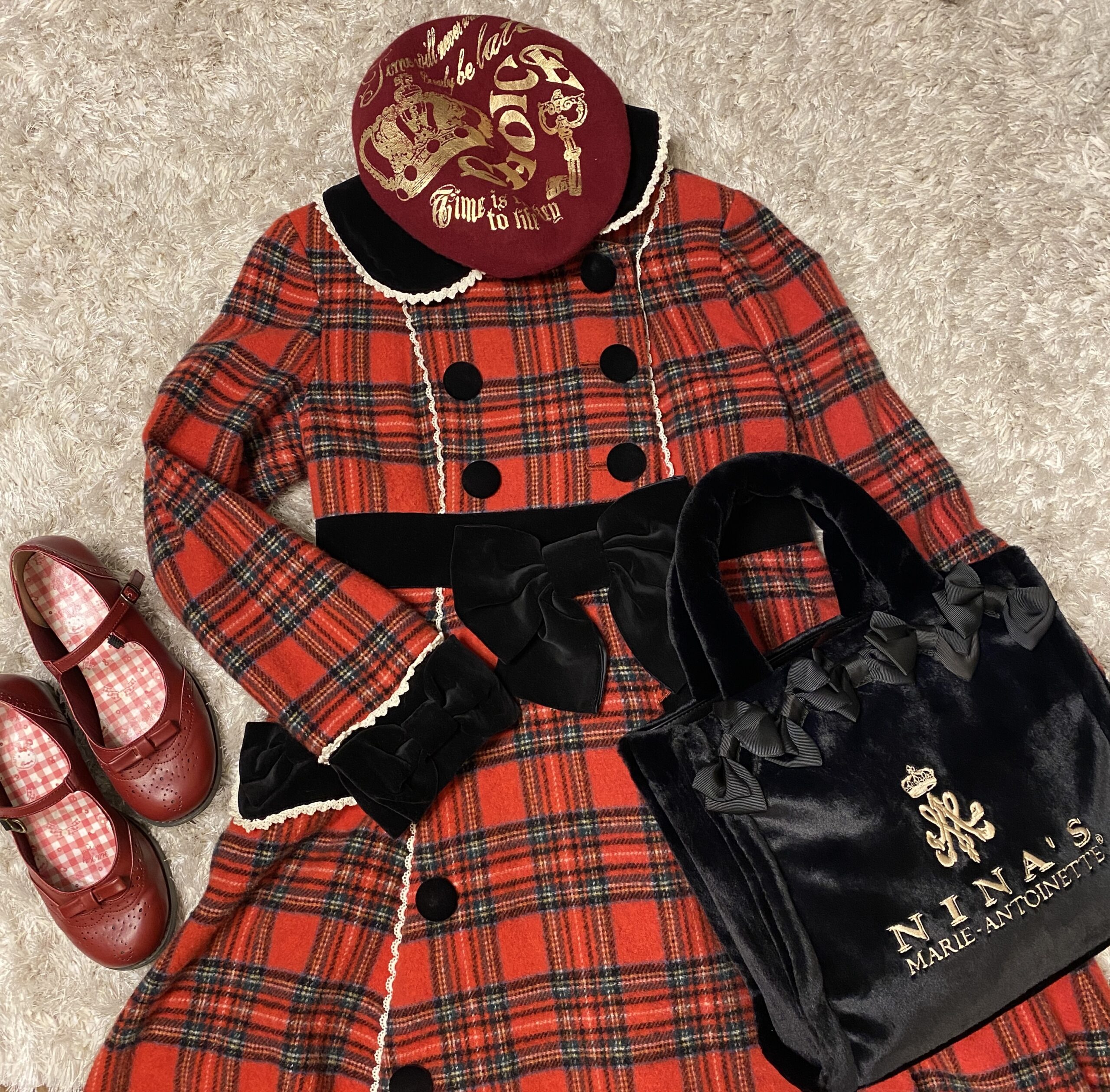 赤チェックとクリスマスな雰囲気に絶対合うなと思い、この鞄でコーデを組みました!